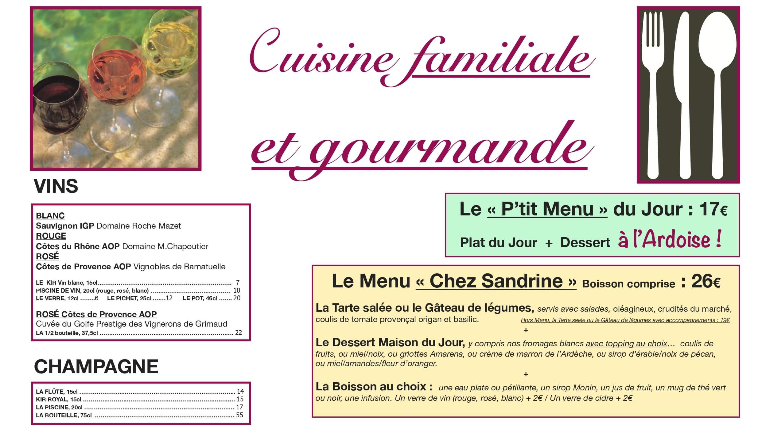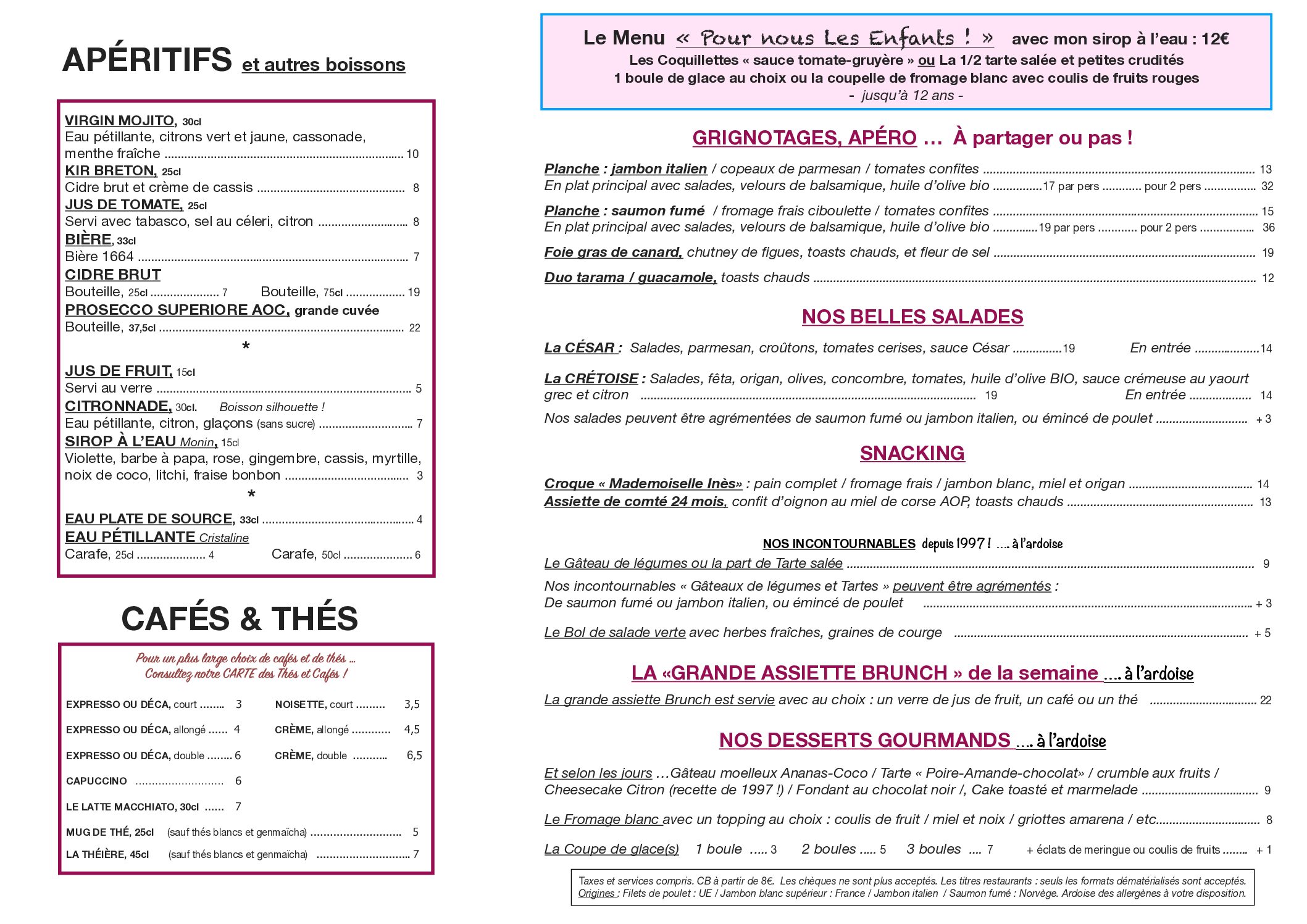 ou un verre de vin de pays : Rouge, Rosé, Blanc (+2€) ou Cidre 25cl (+2€)