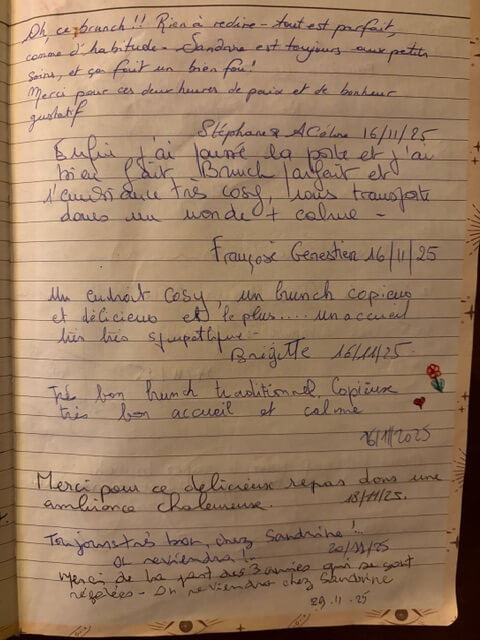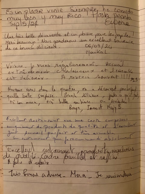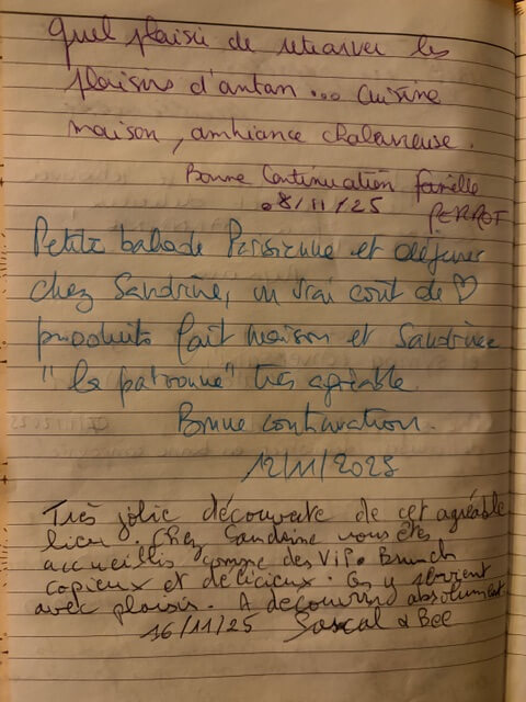 EXCELLENT Basée sur 93 avis Publié sur Marie Laure ConradTrustindex vérifie que la source originale de l'avis est Google. Avec ma sœur nous avons découvert ce joli petit restaurant du XVème arrondissement de Paris où nous avons été très bien reçues. Ambiance très chaleureuse- Déjeuner délicieux. Nous avons pu également apprécier le calme du lieu et le service rapide. Et surtout la qualité du "fait maison " Un régal " ! 😋 Je recommande et vais revenir ! Marie-LaurePublié sur Sandrine et Laurent SchernoTrustindex vérifie que la source originale de l'avis est Google. Lieu très cosy et belles assiettes de brunch. Une très bonne adresse !Publié sur Sylvie Leger GiganTrustindex vérifie que la source originale de l'avis est Google. Lieu tres agreable, charmant accueil et surtout plats delicieux. Nous reviendrons.Publié sur Virginie Lehr CassanTrustindex vérifie que la source originale de l'avis est Google. Un vrai petit bijou dans le 15e ! La cuisine de Sandrine est délicieuse, pleine de fraîcheur et le cadre est super cocooning, on s’y sent immédiatement bien. L’accueil est chaleureux : on a vraiment l’impression d’être à la maison… en mieux ! Une adresse où l’on revient avec plaisir, pour la qualité des plats autant que pour l’ambiance qui s’en dégage. Je recommande à 100 %.Publié sur Sylvain BrunoTrustindex vérifie que la source originale de l'avis est Google. Simple et efficace. Très bon accueillant. Brunch très copieux.Publié sur Aurélie ThomasTrustindex vérifie que la source originale de l'avis est Google. Plats excellents et sains cuisinés avec amour, service chaleureux, et le tout dans un endroit cosy. Merci !Publié sur Valerie LammerTrustindex vérifie que la source originale de l'avis est Google. Excellent ! Merci pour votre accueil, votre service, votre sourire. Nous nous sommes régalés.Publié sur Hannah HenrietTrustindex vérifie que la source originale de l'avis est Google. La salle est assez petite, très mignonne et calme. Les serveuses ont été adorables. Nous avons pris un brunch et nous n'avons pas été déçues ! Les assiettes sont bien garnies et pleines de saveurs différentes. J'ai beaucoup aimé le fait qu'il y ai beaucoup de choses à découvrir dans chaque assiette. Une très belle adresse à tester ! ✨Publié sur Nathalie HenrietTrustindex vérifie que la source originale de l'avis est Google. Un savoureux brunch, un service adorable et prévenant ! Adresse à recommander